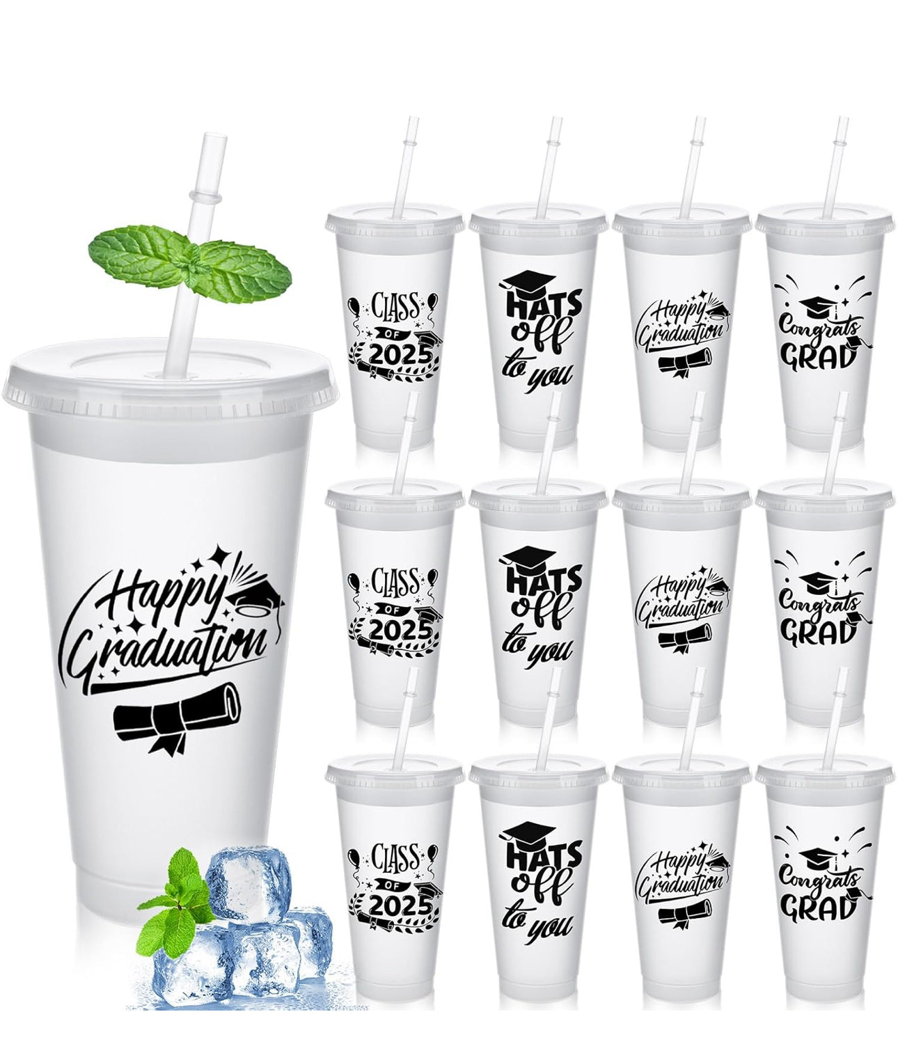 Una docena de vasos de graduación