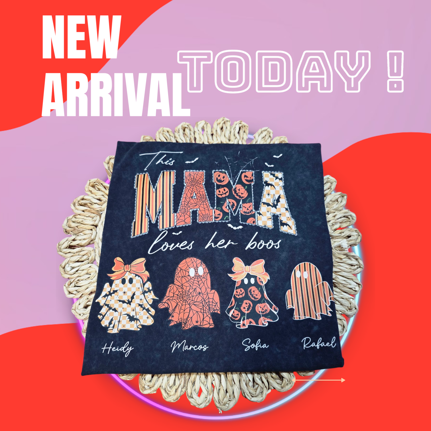 This personalized t-shirt for moms features the names of their children for this Halloween season. Show off your love for your little ones with this cute and unique shirt. A great way to celebrate the holiday and your special bond with your kids. Perfect for any mama who loves her boos!