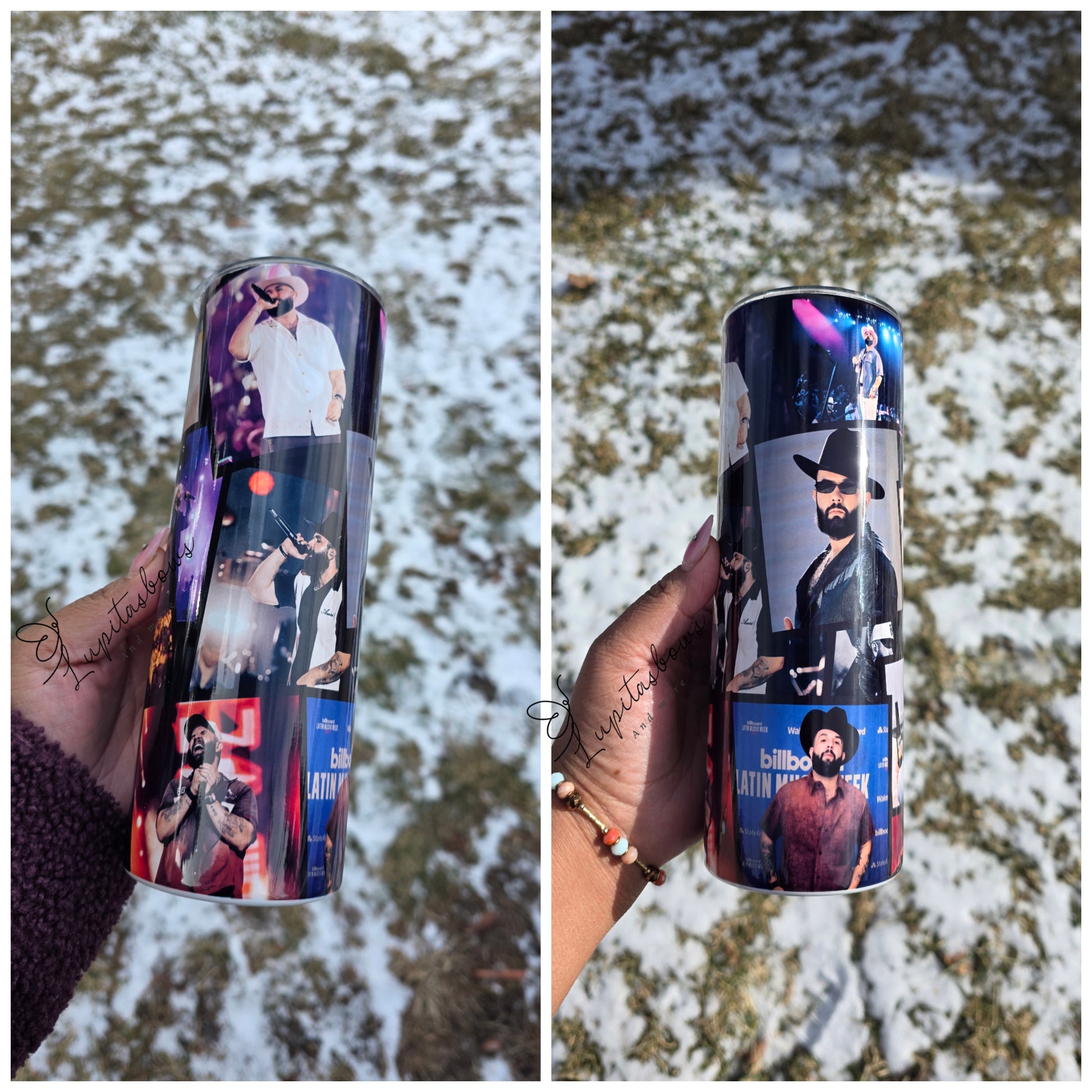 20 oz tumbler personalized con fotos de carin leon