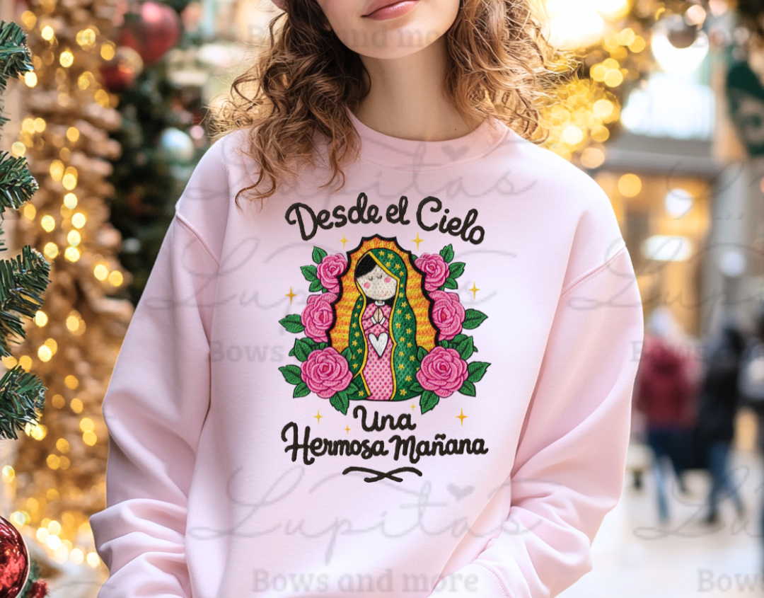 Crewneck con diseño de la virgencita en estilo crochet